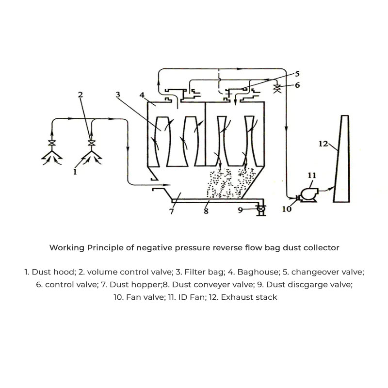 Zberač prachu s podtlakovým spätným fúkaním je zariadenie na odstraňovanie prachu široko používané v priemyselnej výrobe. Funguje tak, že využíva podtlak na spätné fúkanie vzduchu na odstránenie prachu nahromadeného na filtračných vreckách. Medzi hlavné komponenty tohto zariadenia patrí zberná nádoba na prach, filtračné vrecká, podtlakový dúchadlo a zariadenie na spätné fúkanie. V porovnaní s tradičnými zberačmi prachu ponúkajú zberače prachu s podtlakovým spätným fúkaním vyššiu účinnosť odstraňovania prachu a nižšie prevádzkové náklady, vďaka čomu sú medzi spoločnosťami čoraz obľúbenejšie.