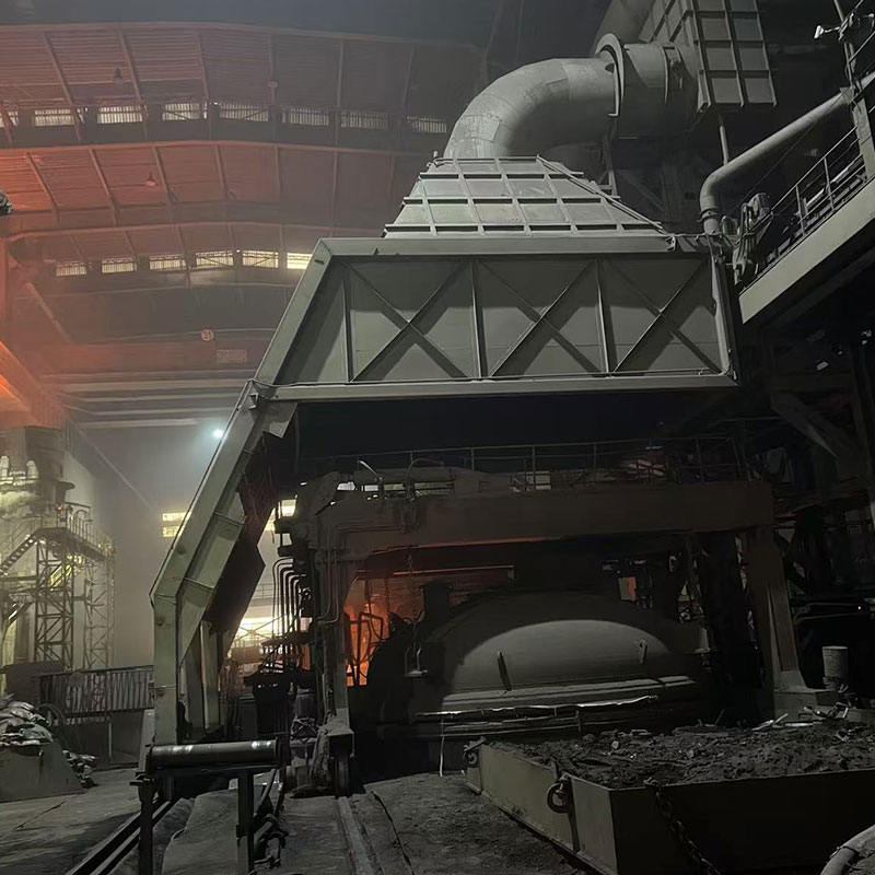 Predný zachytávací kryt konvertora má zvyčajne polouzavretú alebo pohyblivú konštrukciu, ktorá umožňuje dynamickú koordináciu s ústím pece konvertora, aby sa prispôsobila operácia naklápania konvertora. V praxi kryt prekrýva oblasť ústia pece a vytvára stabilné podtlakové prostredie kombináciou technológie fúkania a odsávania. To umožňuje presné zachytenie prechodných vysokoobjemových spalín s vysokou koncentráciou, najmä výparov obsahujúcich železo rozstrekovaných počas nabíjania železa. Okrem toho, pretože teploty spalín konvertora sú extrémne vysoké (okamžite prekračujúce 1400 °C) a sú sprevádzané striekaním železnej trosky, zachytávací kryt je obložený žiaruvzdorným žiaruvzdorným materiálom a obsahuje vodou chladenú medzivrstvovú štruktúru na zvýšenie odolnosti voči tepelnému žiareniu a mechanickému namáhaniu, čím sa predlžuje jeho životnosť.